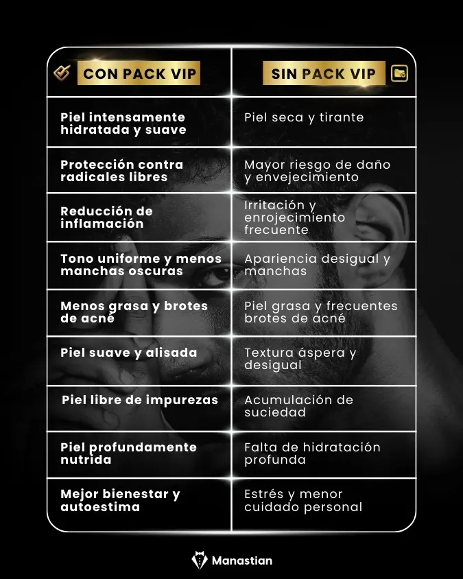 Para quienes buscan sentirse mejor consigo mismos, nuestro Pack VIP ofrece una rutina que transforma tu piel elevando: tu atractivo y confianza en pocas semanas.